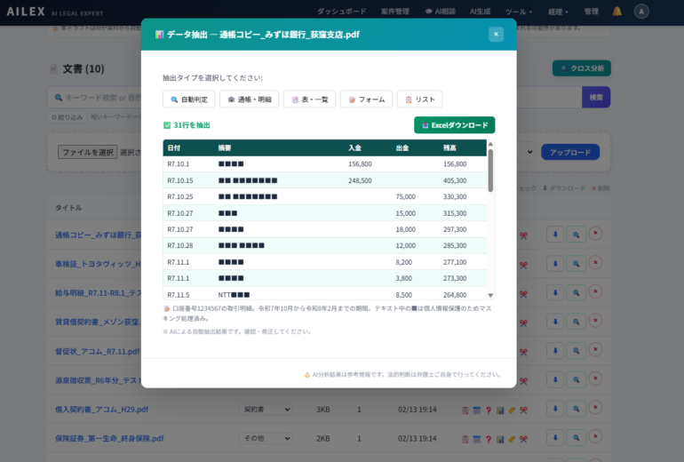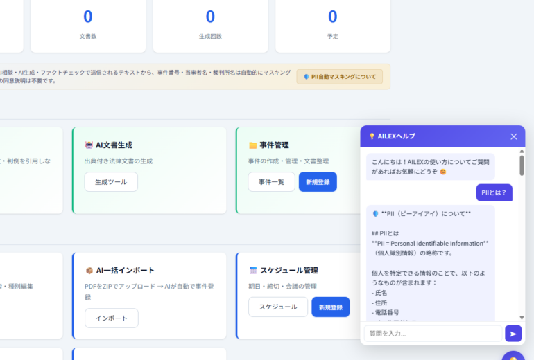 免責事項: AILEXの全AI機能は、弁護士の業務支援ツールとして設計されており、AIの出力はドラフト・参考資料です。法律相談、法的判断、法的助言を提供するものではありません。委任契約書を含むすべての文書は、弁護士ご自身の確認・修正のうえご利用ください。