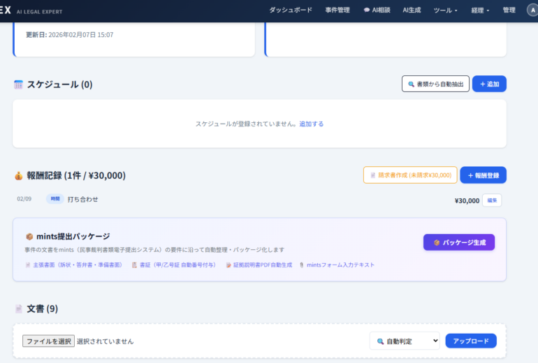 8. 【施行まで残り3か月】mints実務を完全サポート — AILEX新機能「送達期限管理・手数料計算・当事者CSV・提出ステータス」を徹底解説