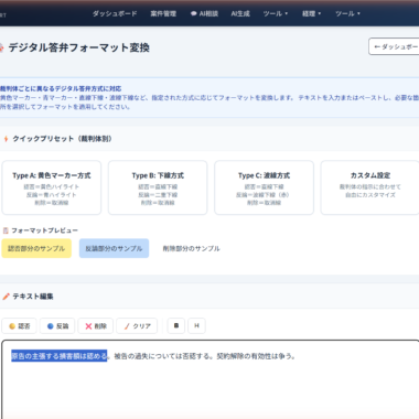 本記事で紹介した機能は、弁護士の業務を支援するツールです。AIが生成する委任契約書は草案であり、弁護士による精査・修正が必要です。最終的な法的判断は弁護士ご自身の責任において行ってください。報酬に関する記載は一般的な実務慣行を参考にしたものであり、個別の事件や依頼者との関係において異なる取決めが適切な場合があります。