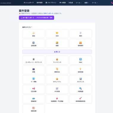 4. 【AILEX新機能】AILEX、弁護士の声をもとに案件管理カテゴリを29種類へ大幅拡充。企業法務・専門分野16カテゴリを新設、各カテゴリ専用のフェーズ管理を搭載。