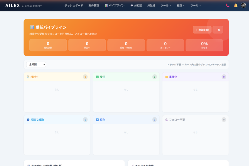 【AILEX新機能】「相談したのに連絡が来ない」をゼロに。AILEXに受任パイプライン管理3機能を追加しました