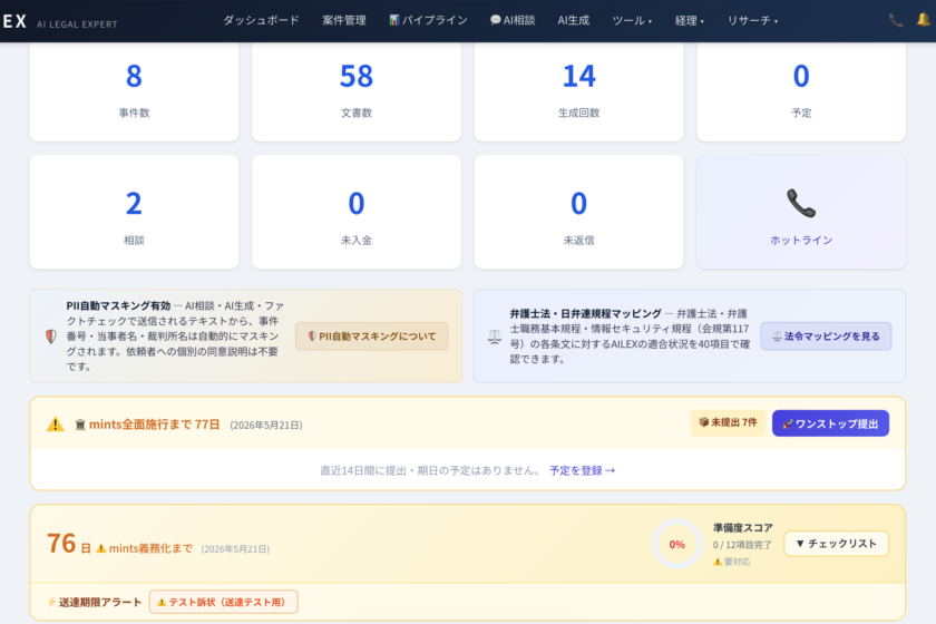 mintsという「一度提出したら戻れない」システムの中で、弁護士が安心して業務を進められる環境を作ること。これがAILEXのmints対応の根幹にある考え方です。