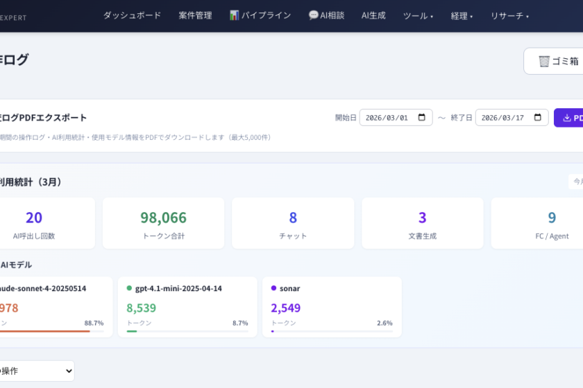 3. AI法務SaaS「AILEX」、AI利用統計ダッシュボードを強化~ どのAIモデルが何回・何トークン使われたかを可視化し、法律事務所のAIガバナンスを支援 ~