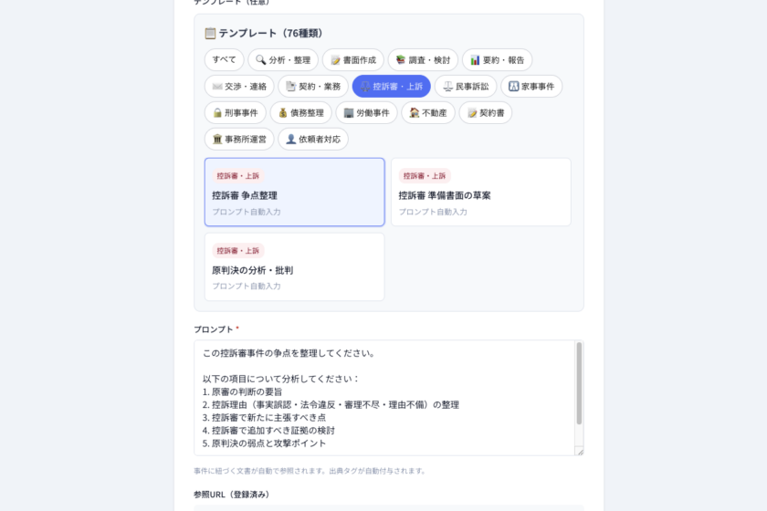 (3)控訴審専用AIテンプレート 6種を追加