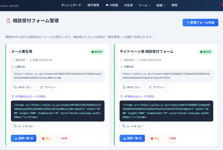 【AILEX新機能】「HPに入力してもらった内容が、そのまま相談管理に入っていれば」— 相談受付フォーム発行機能をリリース